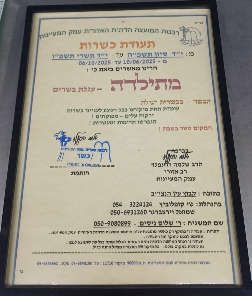 מתילדה: עגלת בשר כשרה בעין הנציב